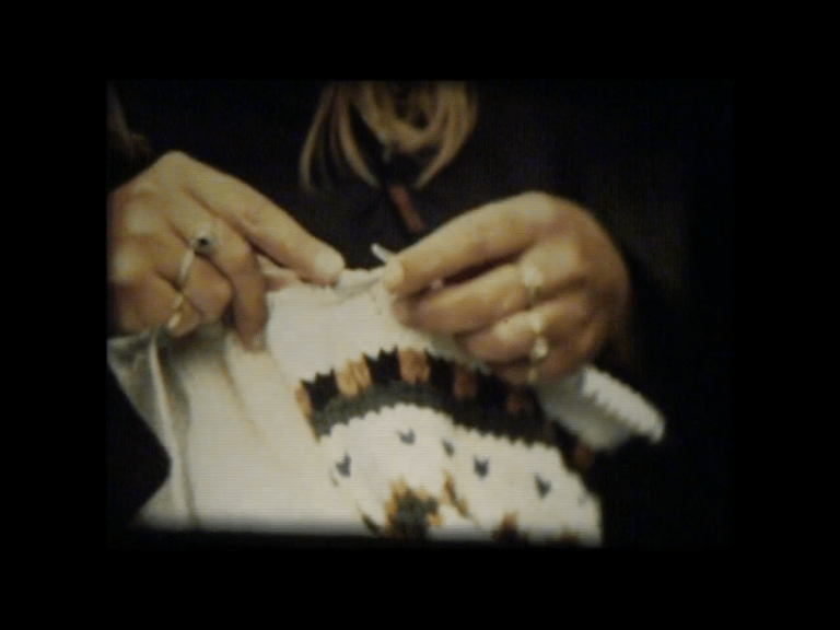 Een alledaagse handeling, namelijk breiende handen, wordt met een super 8 camera vastgelegd. De camera registreert twaalf beelden per seconde. De ‘gebroken’ super 8 look zorgt ervoor dat de toeschouwer de vertrouwde handeling in de diepte waarneemt.