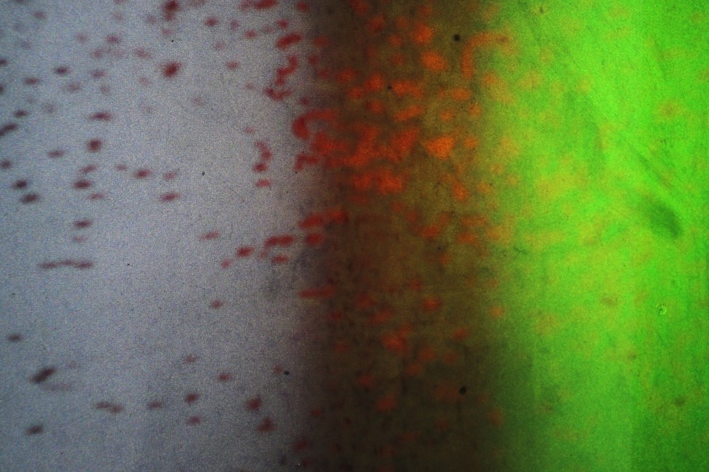 Om dit alles nog meer kracht bij te zetten gebruikte ik een term die gekend is in de hedendaagse muziekscene, namelijk ‘overdub’. Zoals een dj ga ik hier aan het werk. Ik projecteer het beeld op een computer-screen, dat ik tegelijkertijd fotografeer.