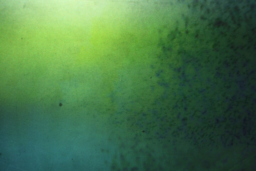 A digital image of a formation flight of migratory birds is projected on a copper plate. The reflective surface, a copper plate, creating a new image through (over) lighting, reflections, … .